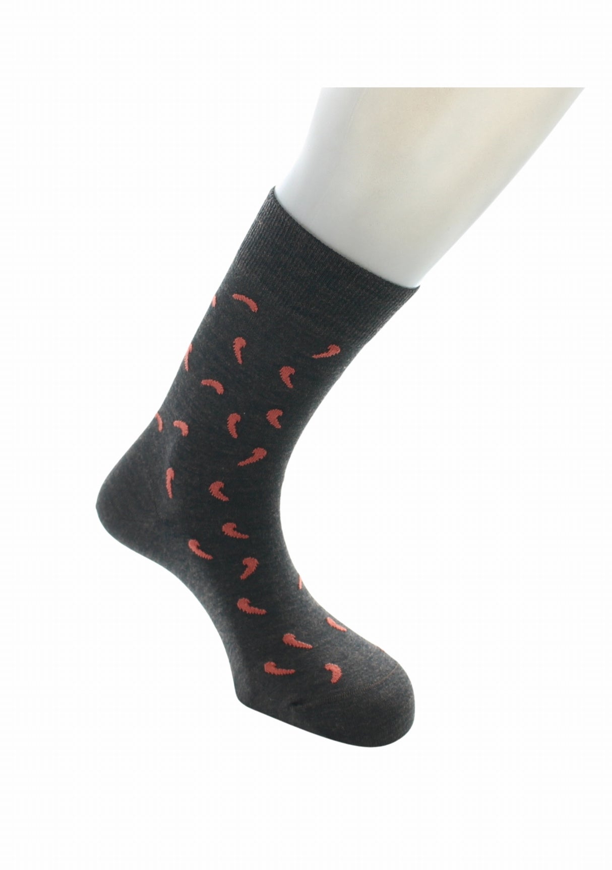 Chaussettes homme Confort Plumetis en laine peignée GRIS-ROUGEChaussettes homme Confort Plumetis en laine peignée GRIS-ROUGE