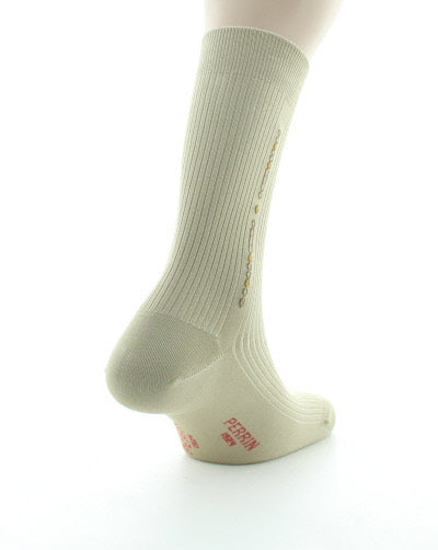 Our "well-being" socks are knitted in a progressive tight. This knitting method allows the sock to hold on the calf, without compressing it. The edge is guaranteed to be elastic-free: no more marks on the calf and discomfort! These socks will be ideal for anyone with diabetes or blood circulation problems. The heels and toes are reinforced with an additional polyamide thread to increase their lifespan. This Scottish yarn model has a ribbed knit and will adapt perfectly to your foot thanks to the size-by-size knitting. Fine links on the upper add a touch of fantasy to this sock. Raw materials certified and labeled Oeko-Tex. Exclusively French manufacturing in our Burgundy workshops in Montceau-les-Mines (71).