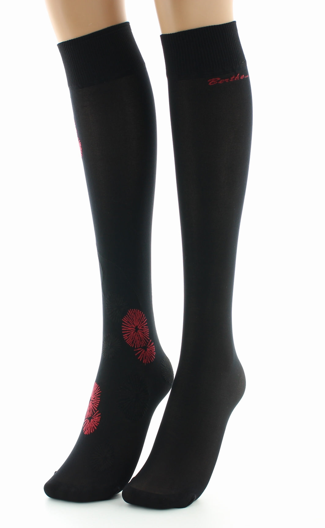 La particularité des mi-bas en lycra 40 deniers de chez Berthe Aux Grands Pieds réside dans le savoir-faire de tricotage : une triple dimension qui permet à la maille d'être souple, extensible dans toutes les directions et qui ne plissera pas sur la jambe.