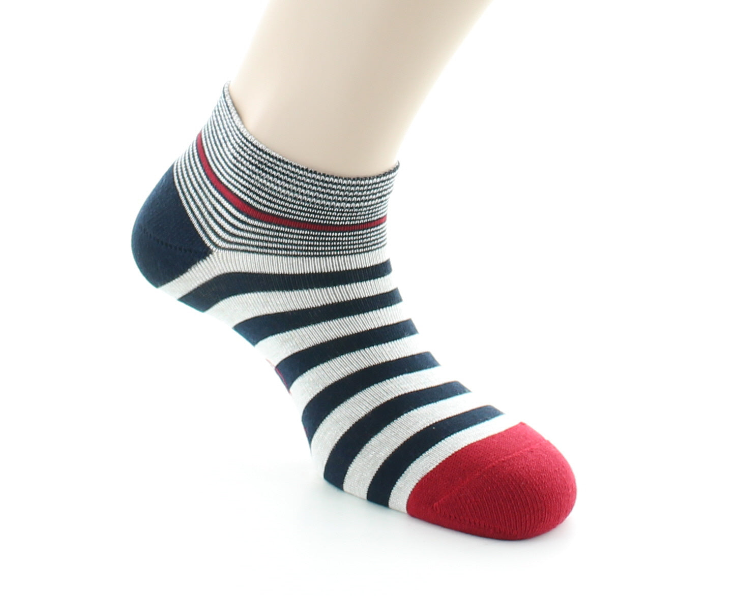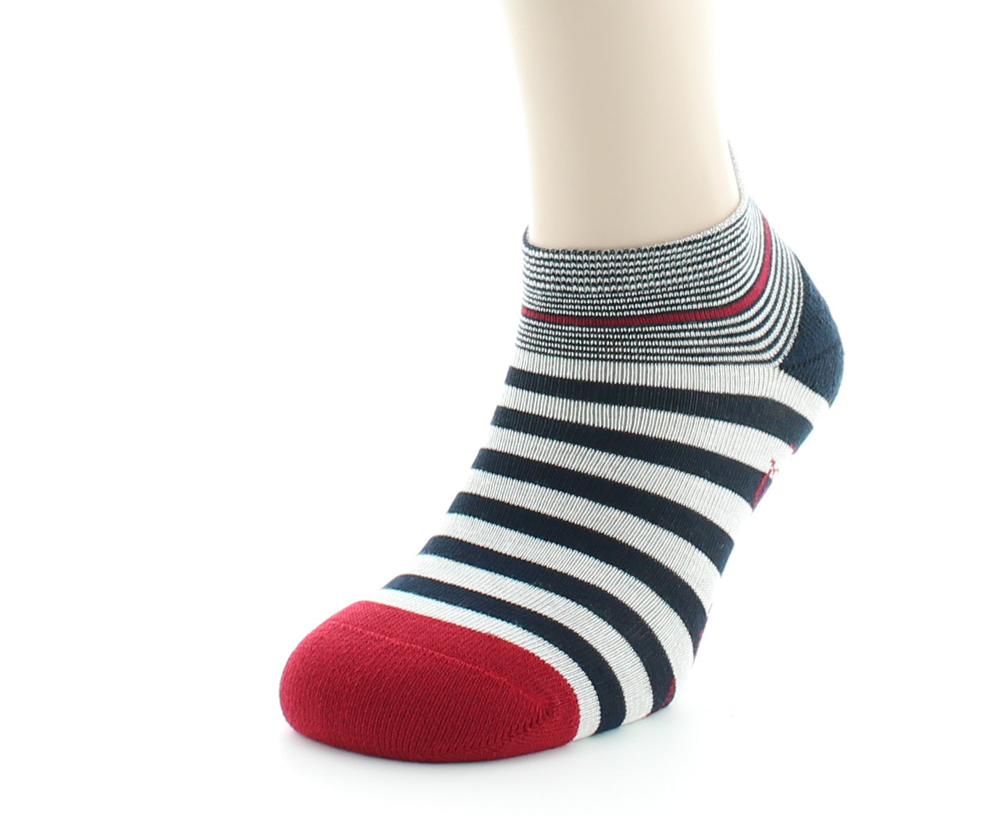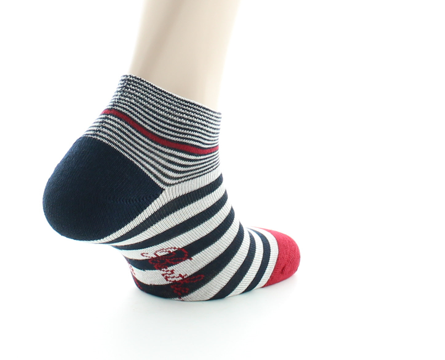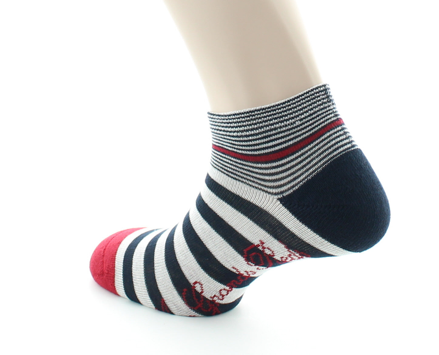 Très légères au porté, elles conviendront aux plus sportifs d'entre vous ! Modèle style marin, à rayures bleu marine et écru et une rouge, rappelant la pointe de la socquette !