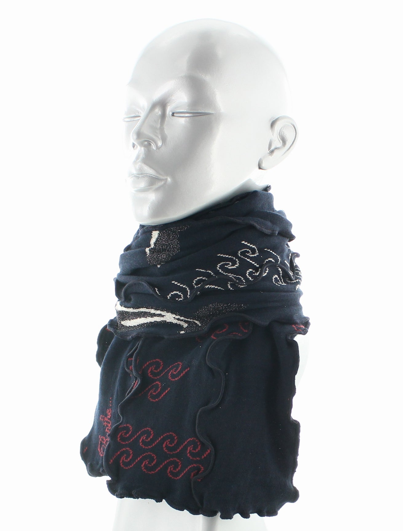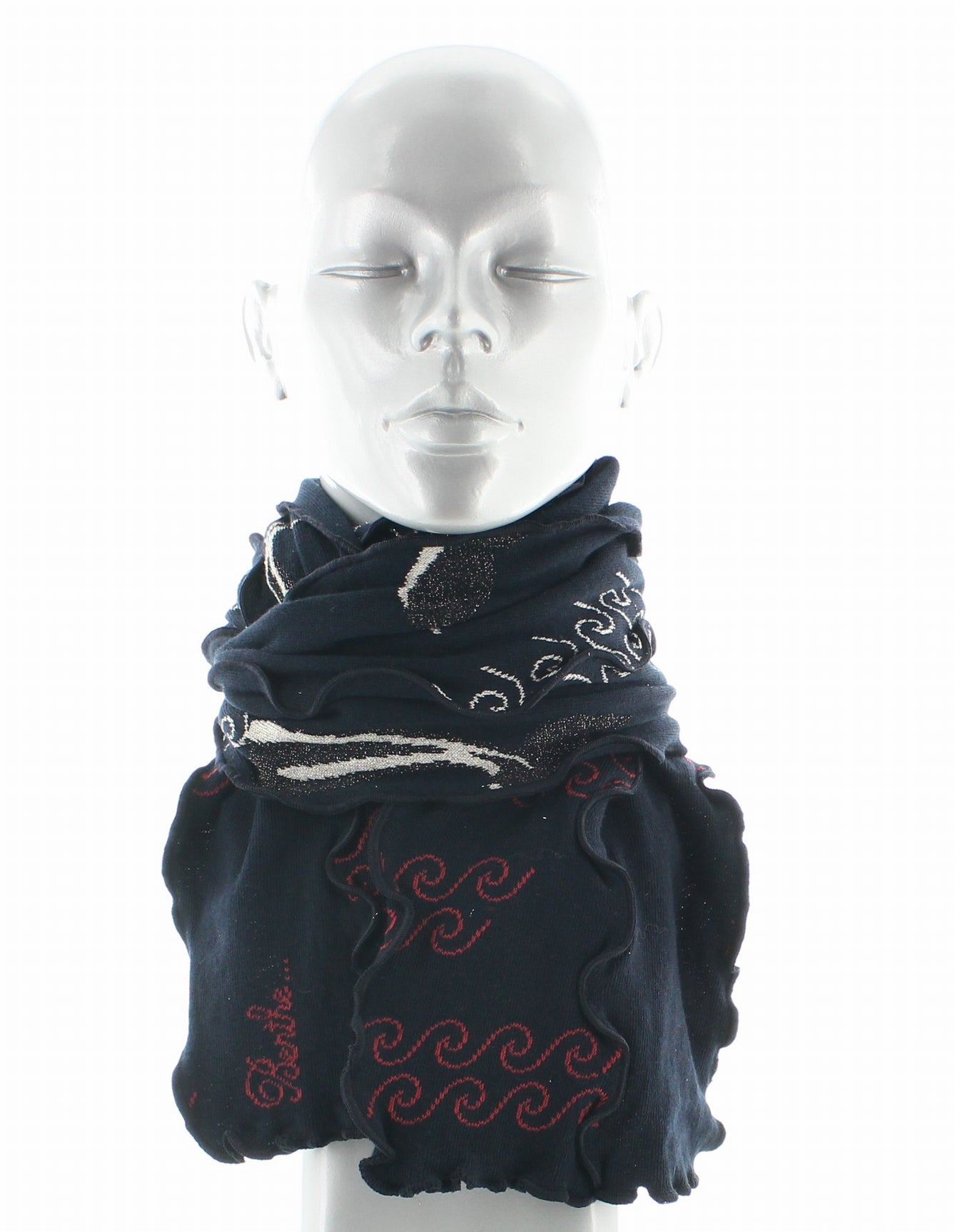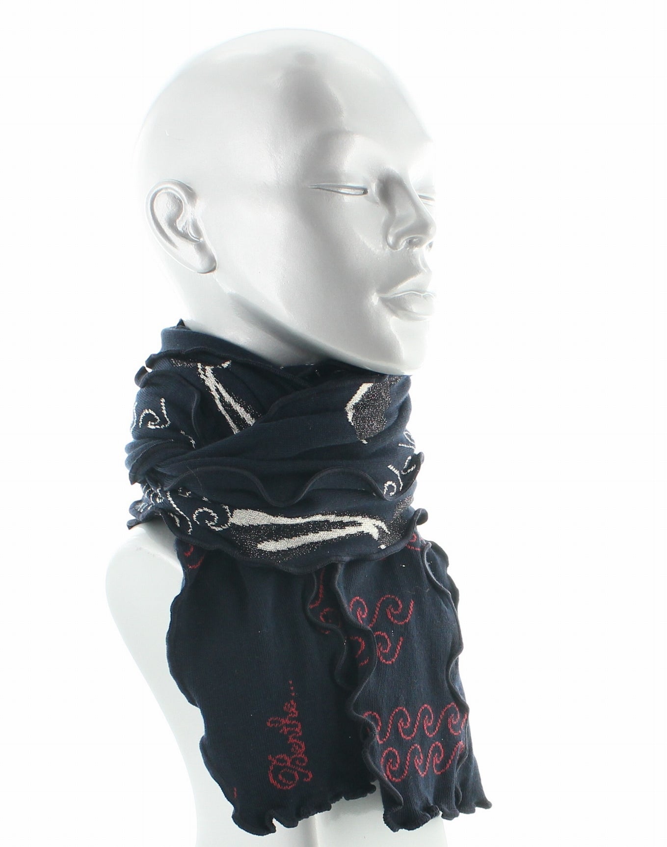 L'écharpe en coton "la baleine", la touche originale pour finaliser votre tenue cet hiver ! Sur un fond bleu marine, la baleine et les vagues sont mises en avant par un fil pailleté noir. A assortir avec les chaussettes, mitaines, bonnet de la même collection.